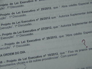 Projeto de Lei Executivo nº 14/2012: Autoriza Suplementar dotação no orçamento em Execução. O Projeto objetiva a aquisição de um veículo perua.