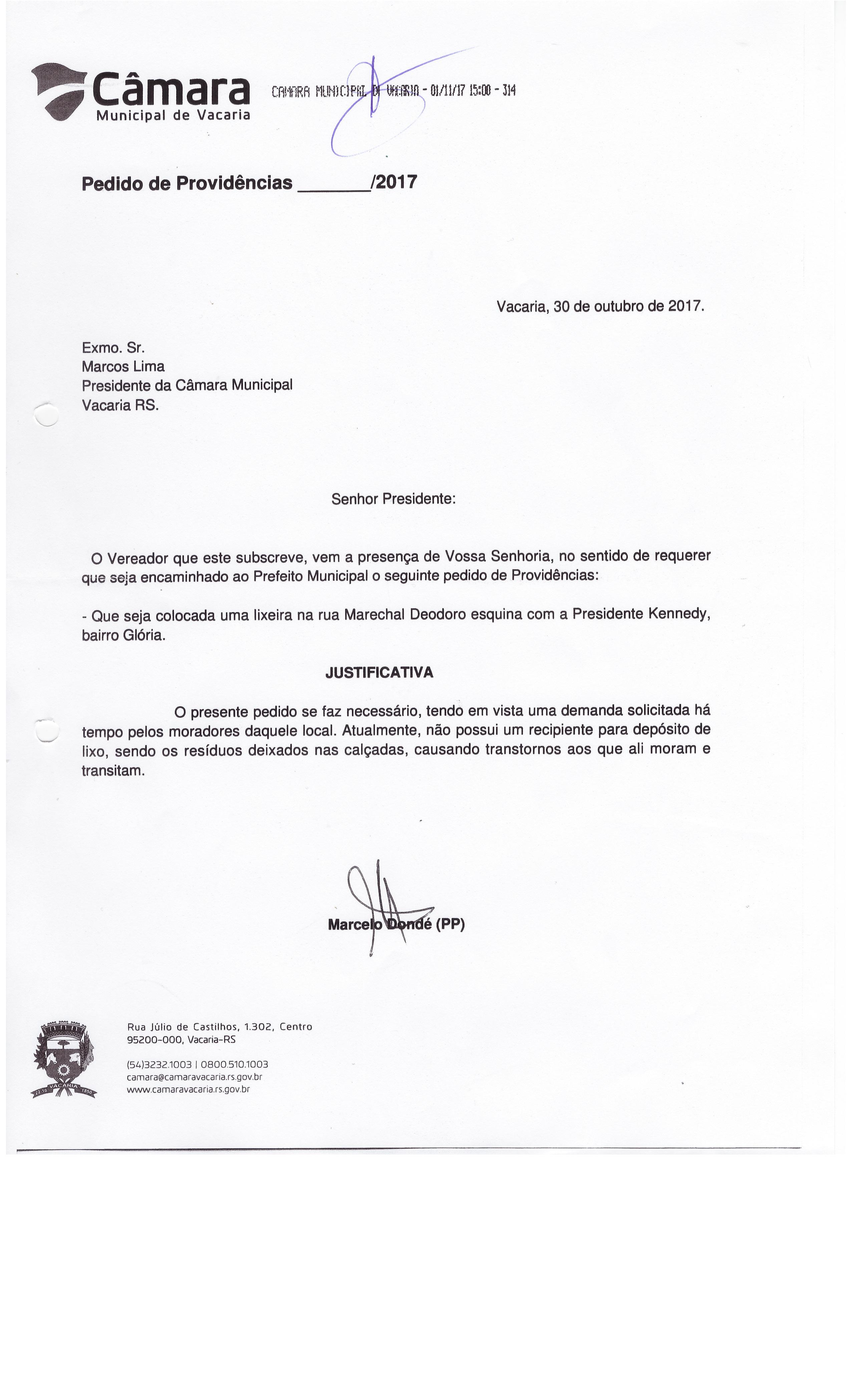 O presente pedido se faz necessário, tendo em vista uma demanda solicitada há tempo pelos moradores daquele local. Atualmente, não possui um recipiente para depósito de lixo, sendo os resíduos deixados nas calçadas, causando transtornos aos que ali moram e transitam.