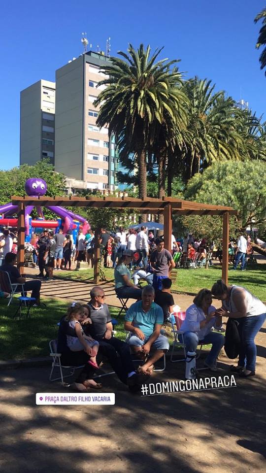 Domingo de sol em Vacaria para o primeiro evento Domingo na Praça com a iniciativa do Leonardo Vargas, com o desejo de levar as famílias para o Praça Daltro Filho. Ao procurar o Gabinete do Vereador Maurao iniciaram esse projeto buscando apoiadores aos quais alguns puderam estar neste domingo e outros participarão dos próximos eventos. A ideia é de realizar mais encontros com os apoiadores e desta forma criar a mobilização para os finais de semana a praça ser usada como centro de lazer como também ampliar as demais áreas verdes da cidade a fim das famílias aproveitarem estes ambientes. O evento conta com a comissão organizadora: Maurao Deluchi Schuler, Leonardo Vargas, Claudete Gasperin, Rosa Varaschim, Héctor Alves e Claudia Santos Vanin.