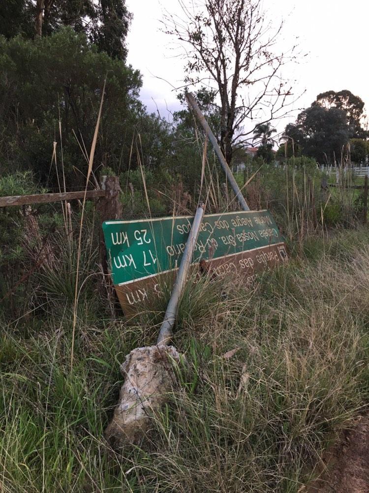 - Que seja providenciada a recolocação das placas que identificam e orientam o deslocamento as comunidades do 5° distrito e atrações turísticas desta determinada região. segue fotos em anexo.