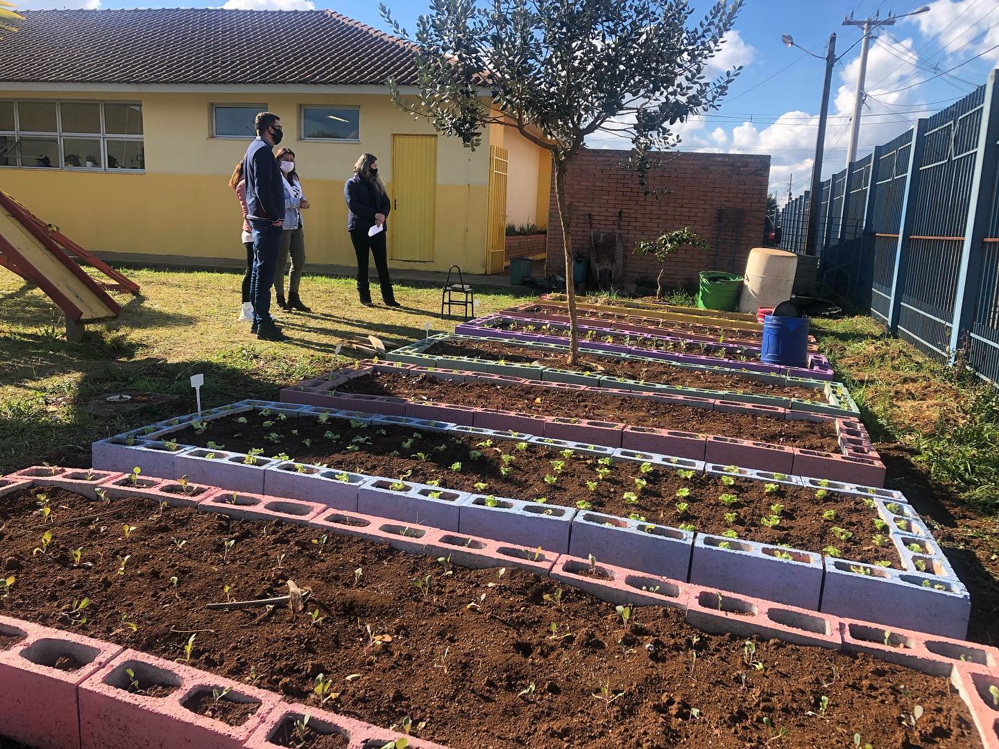 Estivemos nesta tarde na Escola Municipal de Educação Infantil Synval Guazzeli, conhecendo o projeto que dispõe de espaço com canteiros de hortaliças, onde as crianças têm vivências diárias.