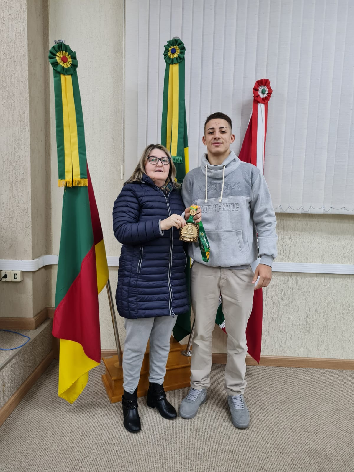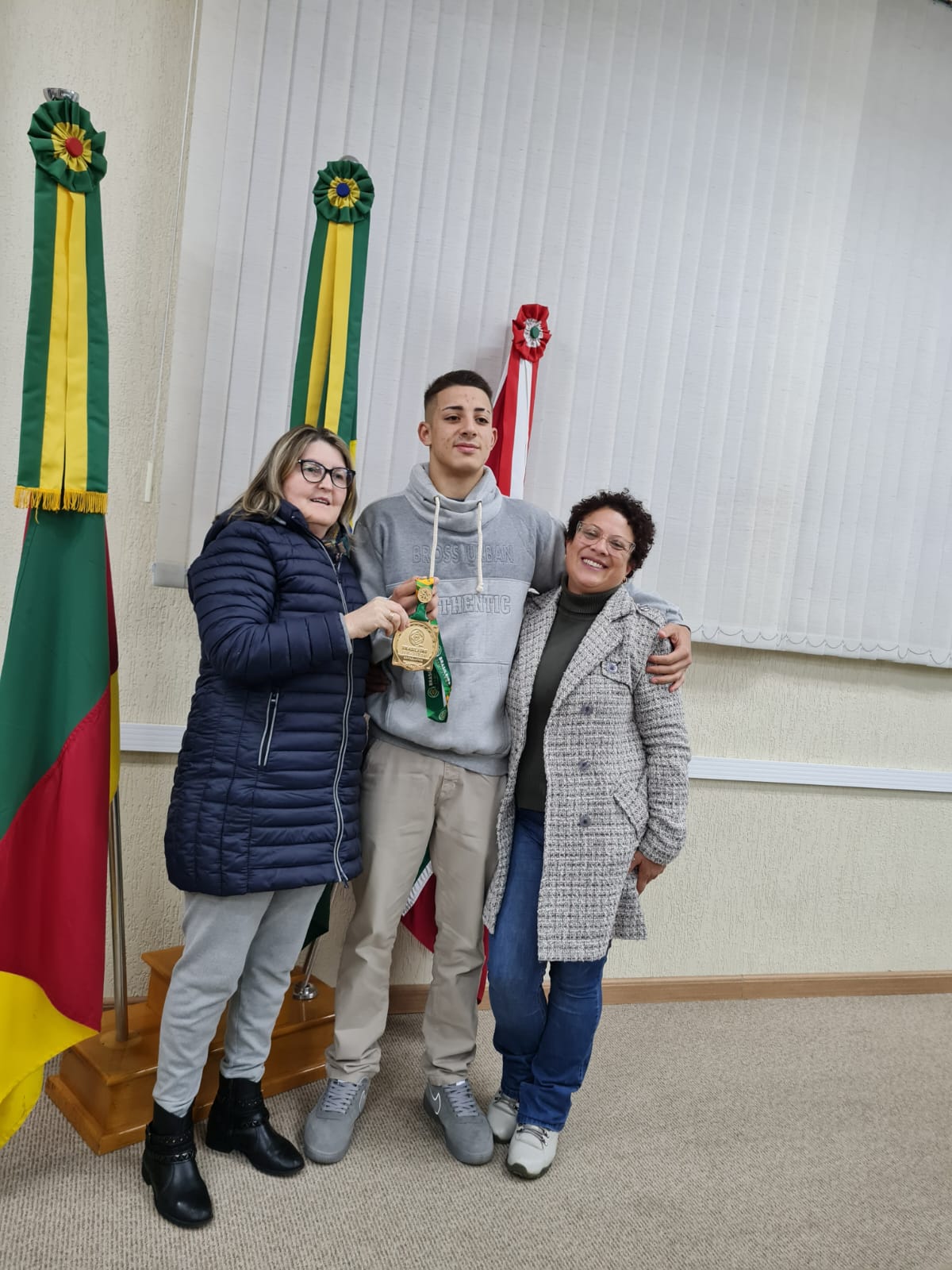 Na sessão ordinária de segunda – feira (16), fomos honrados com a presença do Campeão Brasileiro de Jiu-Jitsu, o vacariano Leonardo Fernandes, juntamente com sua mãe Tatiane. Em seguida, o jovem se manifestou na tribuna livre, para narrar sua trajetória nessa modalidade, onde vem superando e conquistando dia a dia. Parabéns campeão, que venham novas conquistas.