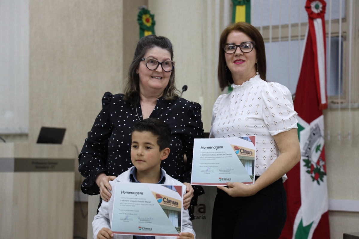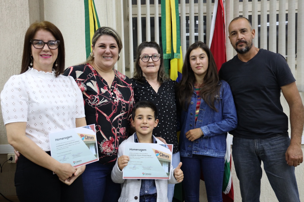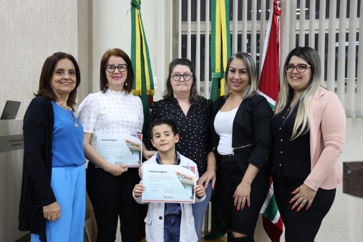 Essa e uma noite de vitória, em podermos compartilhar essa conquista da PROFESSORA LILIANA SANTOS DE CAMPOS, e do Aluno JOAQUIM ROSSATO MACIEL, da Escola Municipal de Educação Infantil (EMEI) Ceny Paim Mezari, de Vacaria, pois temos a certeza que incentivando os alunos das escolas estamos dando importância para a educação. Um orgulho emreconhecer o brilhante trabalho realizado por este Educandário em nosso município. PROFESSORA LILIANA, Sabemos do seu potencial no exercício do magistério, vem semeando saberes, além de ensinar a sua disciplina a cada aluno, é como uma família que ensina os caminhos da vida a seus filhos. Plantando esperança no coração das crianças.A educação é fundamental para o ser humano, é o princípio para o sucesso e formação de todo cidadão, a Escola é o segundo lar para um estudante, Estudar só traz benefício ao ser humano e será a garantia de futuro brilhante, portanto, temos que apoiar e incentivar nossas escolas. Queridos professores que vem para ensinar crianças e jovens a terem um aprendizado melhor, ensinar a terem forças para enfrentar qualquer obstáculo de conhecimento com o mundo, uma pessoa não é nada sem a escola sem o estudo, Nossa Gratidão a todos os profissionais da Educação.
