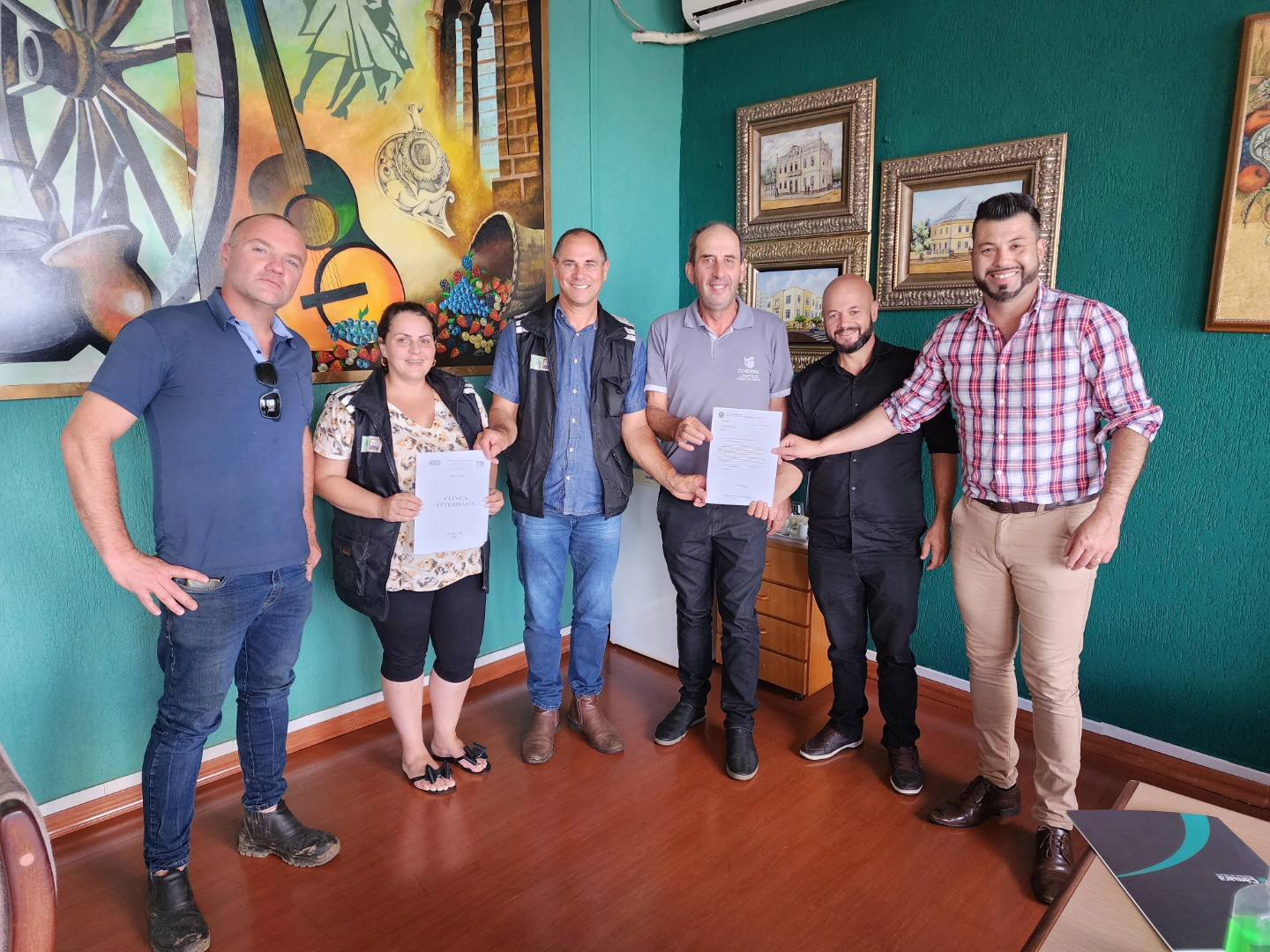 A entrega da emenda foi um momento marcante, realizada ao Prefeito Municipal Amadeu Boeira, na tarde de hoje, em companhia do Vereador Fabiano Vacaria e do presidente do União Brasil de Vacaria, Carlos Zibetti.