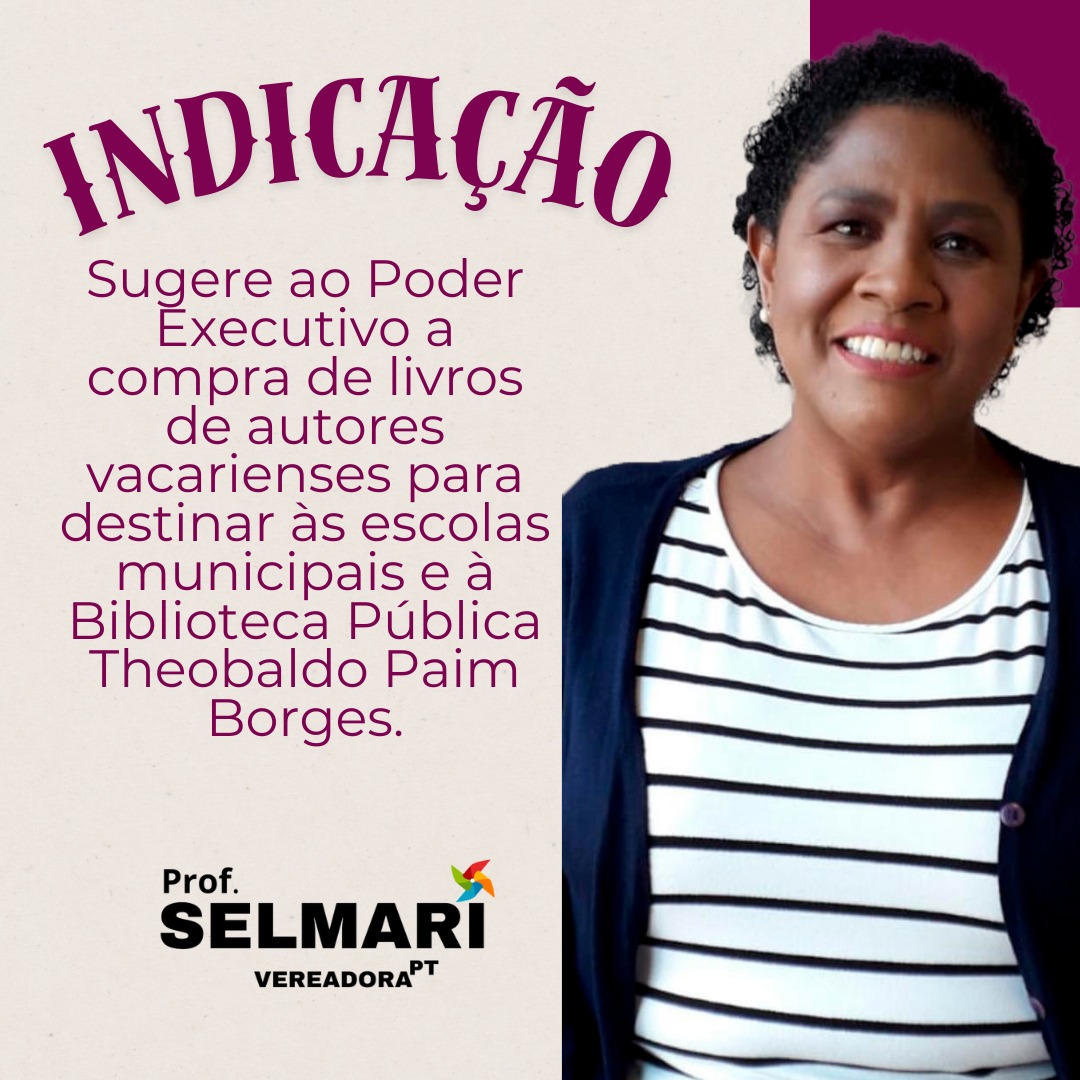 Sugere ao Poder Executivo a compra de livros de autores vacarienses para destinar às escolas municipais e à Biblioteca Pública Theobaldo Paim Borges.