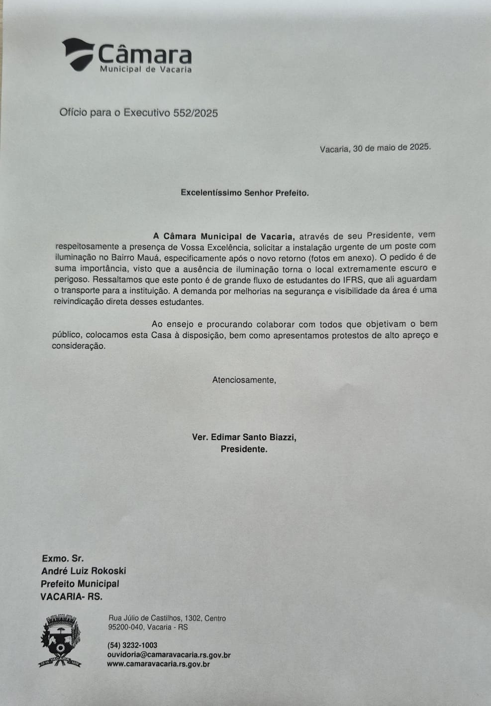 EDIMAR BIAZZIOfício para o Executivo n° 1001/2025
